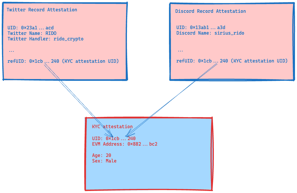 Twitter record attestation and record attestation can reference an existing KYC attestation to give more information.